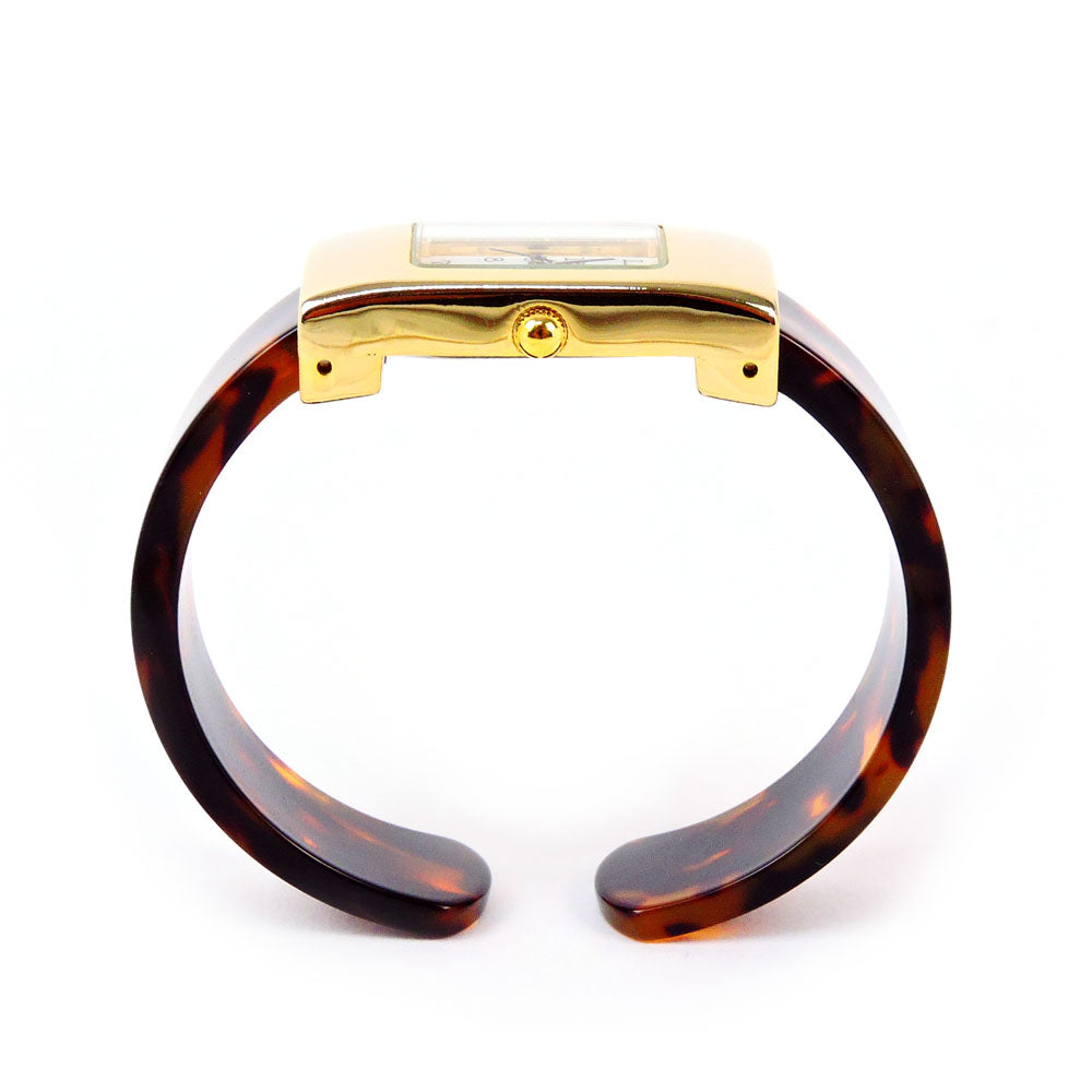 Tortoise Gold Acrylic Band Rectangle Face Women's Bangle Cuff Watch